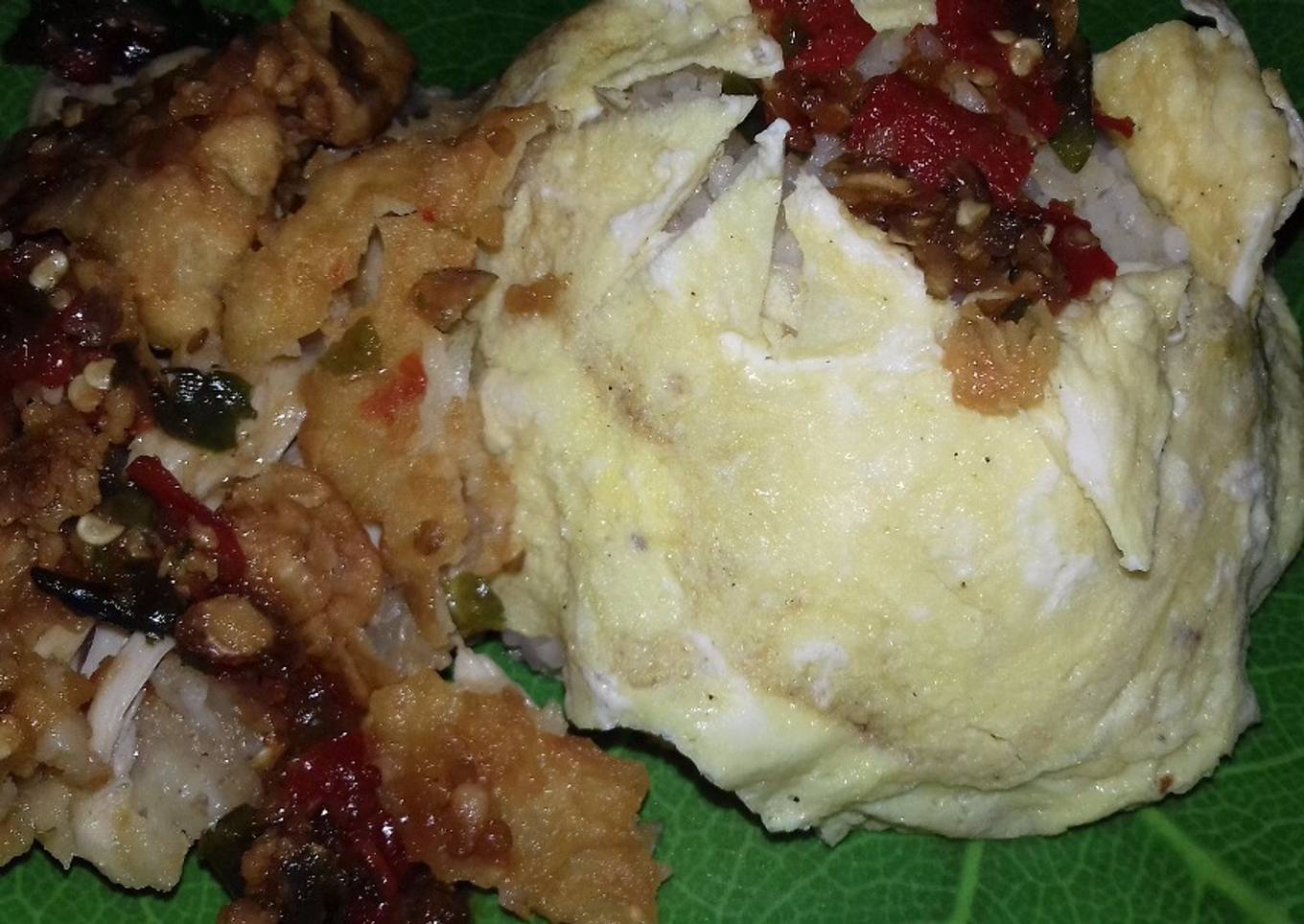 7. Lalu setelah ayam matang geprek ayam tersebut dengan sambal tadi. (Kalau saya dihidangkan bersama telur dadar juga :) )\"\"