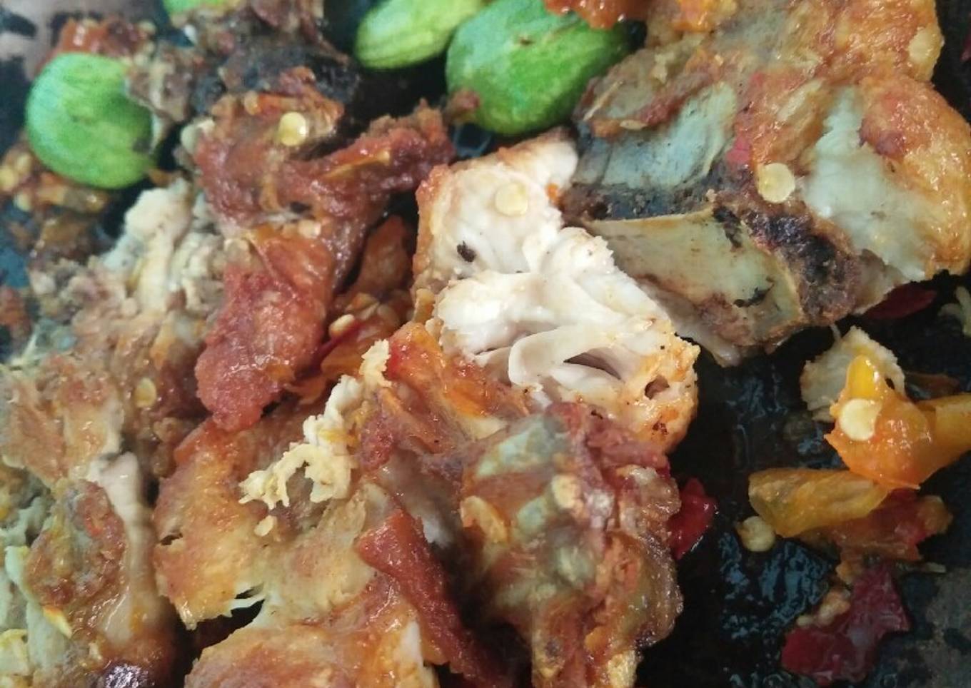 - Ketika ayam sudah matang,angkat panas2 lngsung masukkan ke cobek.langsung di geprek.