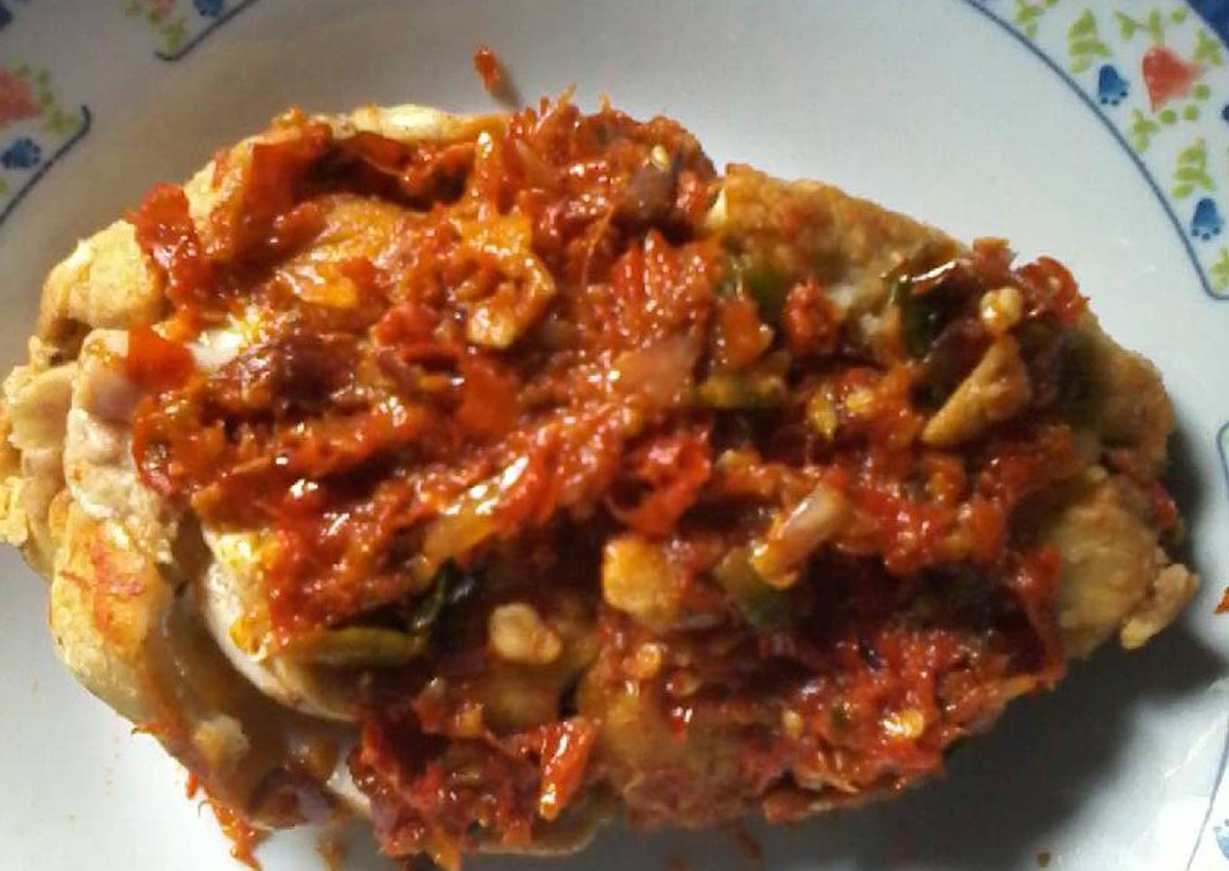 - Geprek ayam diatas ulekan cabe tadi,dan aduk" hingga merata