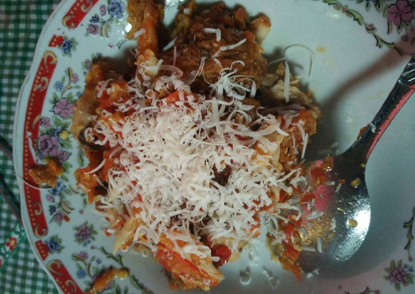 4. Angkat pada piring lalu tambahkan keju yg sudah diparut..